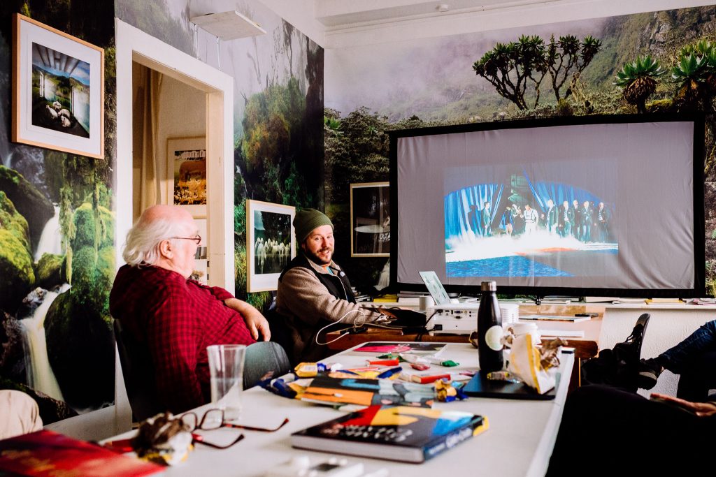 Wir waren nicht nur in den Kneipen und auf dem Rosenmontagsumzug unterwegs, wir haben auch viel Zeit im Seminarraum verbracht und unsere Arbeiten besprochen. Nikita hat sich ausreichend Zeit genommen, seine Vorgehensweise anhand seiner Projekte zu beschreiben. Und dabei waren nicht nur Aufnahmen aus Game of Chairs, er hatte auch ein Dummy Book dabei, also eine Vorabversion des Buches, das im Sommer erscheinen wird. Ich war sehr schnell extrem begeistert, so dass ich sofort das Vorhaben getroffen habe, dieses Buch in der Fotobuch Plauder Ecke vorzustellen.